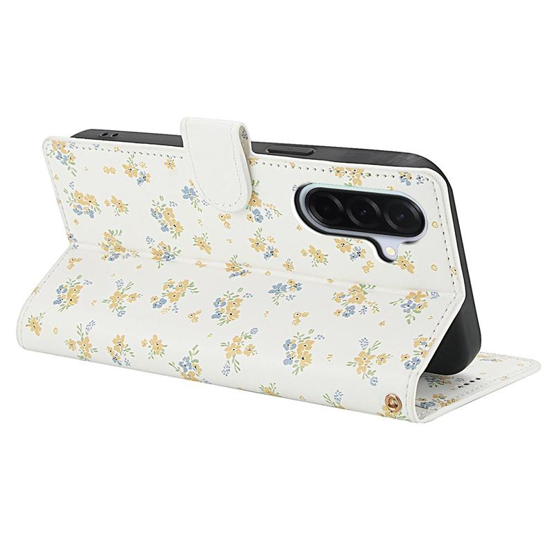 Uppdatera din Samsung Galaxy A17, Galaxy A26 med en tunn flip-plånbok som kombinerar säkert skydd och praktisk användning i vardagen. Den rombiskt sydda fronten och det småblommiga mönstret ger en elegant stil, medan ett mjukt TPU-skal dämpar fall och ett polyuretanomslag skyddar mot repor. Flera kortplatser, en kontantficka och en medföljande handledsrem gör det här fodralet till den perfekta lösningen för pendling, resor eller utekvällar.