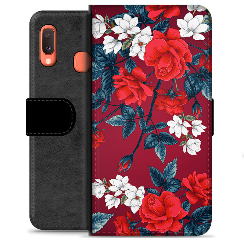 Samsung Galaxy A20e Premium Plånboksfodral - Vintage Blommor