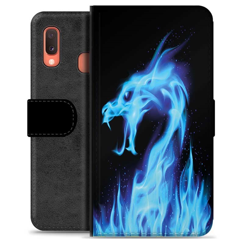 Samsung Galaxy A20e Premium Plånboksfodral - Blå Elddrake