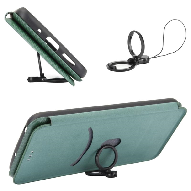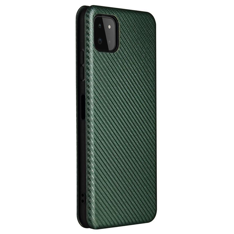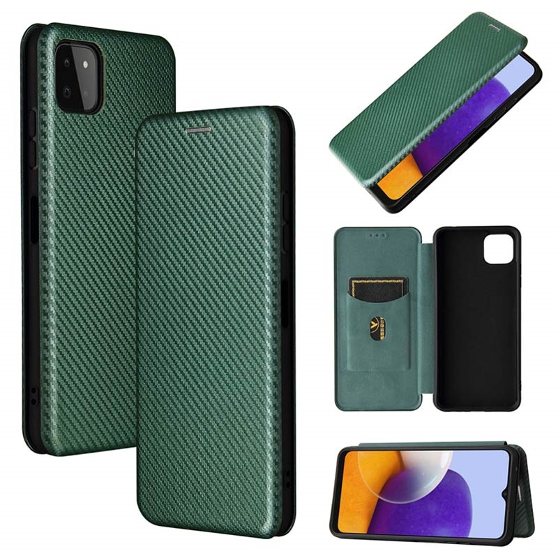 Samsung Galaxy A22 5G, Galaxy F42 5G Flipfodral - Kolfiber - Grön