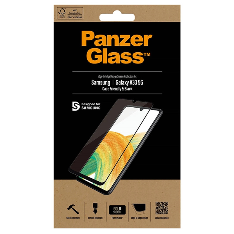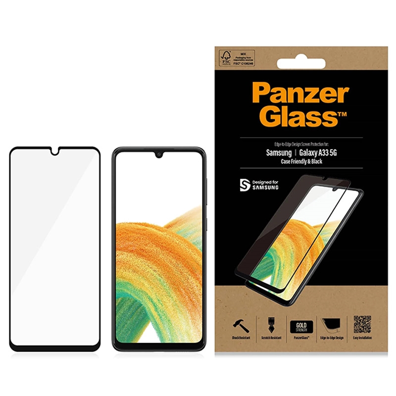 - PanzerGlass Case Friendly skärmskydd i härdat glas för Samsung Galaxy A33 5G