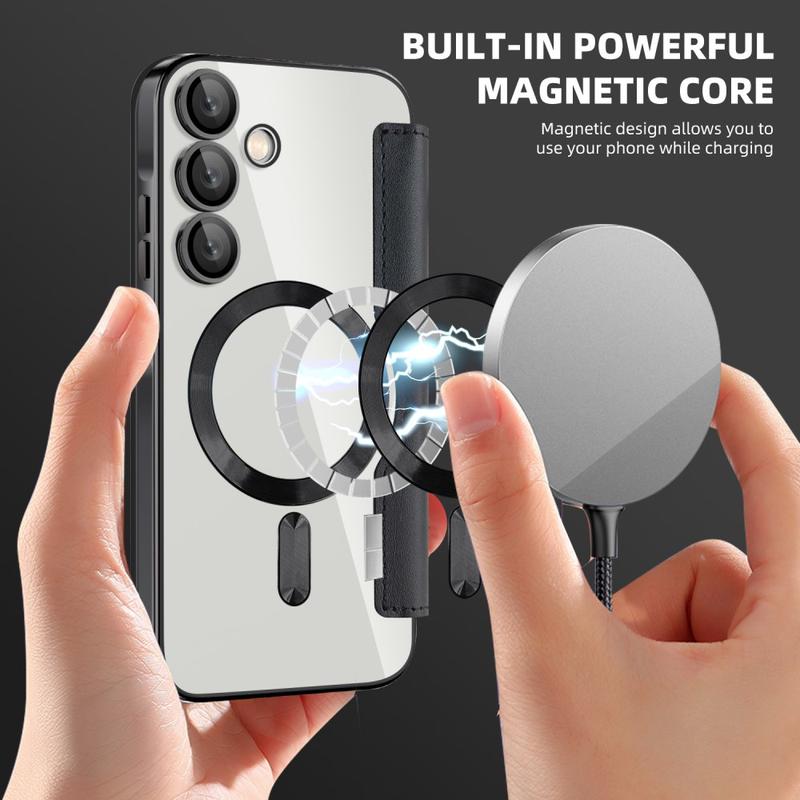 Detta premiumfodral till Samsung Galaxy A35 är tillverkat av högkvalitativ TPU, akryl och polyuretan, med en fin process för att säkerställa en känslig och utsökt finish. Det är utrustat med en praktisk kortplats för enkel svepning och utlägg på språng, och har en stark magnet för automatisk stängning, vilket gör det säkert och bekvämt att hantera föremål inuti. Detta Samsung Galaxy A35-fodral ger ett effektivt skydd mot dagligt slitage, repor, märken och skrapsår, medan den avancerade RFID-blockeringstekniken i kortfacket ser till att din personliga information skyddas mot stöld. Den inbyggda magnetringen är dessutom kompatibel med MagSafe trådlös laddning, vilket innebär att du kan ladda din Samsung Galaxy A35 utan att ta av dig fodralet.