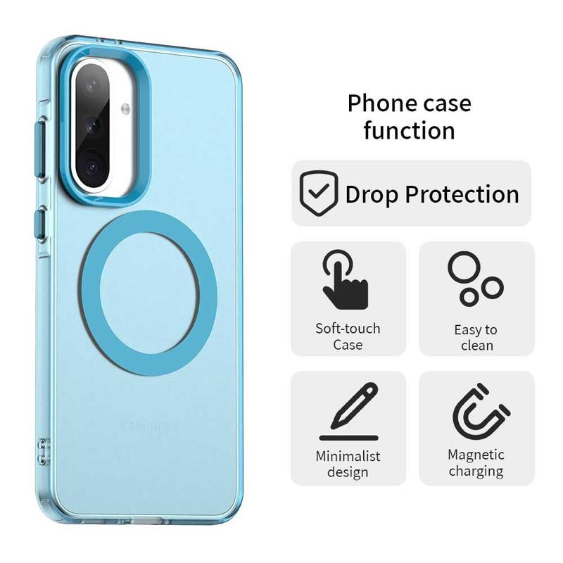 UltraGuard Matte MagSafe Case erbjuder en perfekt balans mellan skydd och elegant design för din Samsung Galaxy A36, Galaxy A56. Det här tunna, lätta fodralet är tillverkat av en hållbar blandning av TPU- och PC-material. Dess matta genomskinliga finish ger din Samsung Galaxy A36, Galaxy A56 ett elegant utseende samtidigt som den ger enkel åtkomst till MagSafe-laddning. Med överlägset fall- och repskydd är det ett utmärkt val för daglig användning.