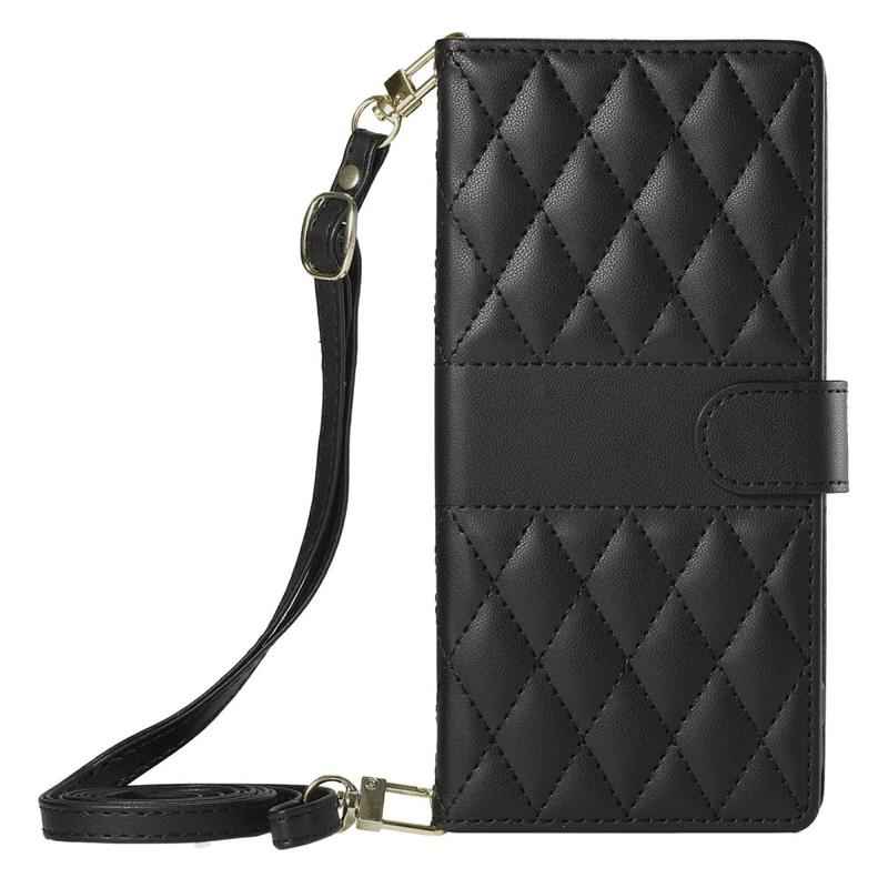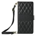 Lyxigt quiltat plånboksfodral med axel- och handledsrem för Samsung Galaxy A37 - skyddande fodral med rombmönster