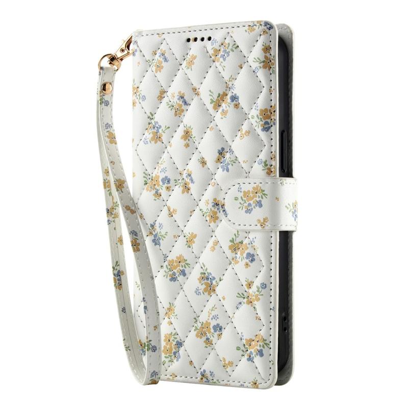 Rombiskt blommigt plånboksfodral för Samsung Galaxy A37 - med rem och kortfack