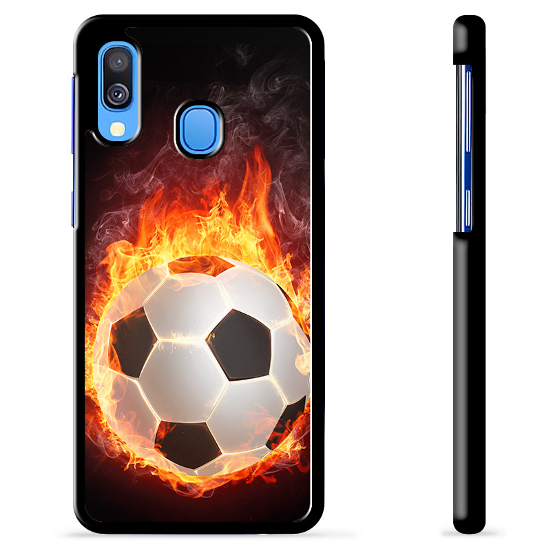Skydda din Samsung Galaxy A40 med detta iögonfallande skyddsskal som pryds av en fotbollsflamma. Skalens design har en levande och realistisk bild av en fotboll som omges av intensiva flammor, perfekt för fotbollsentusiaster som vill visa sin passion för