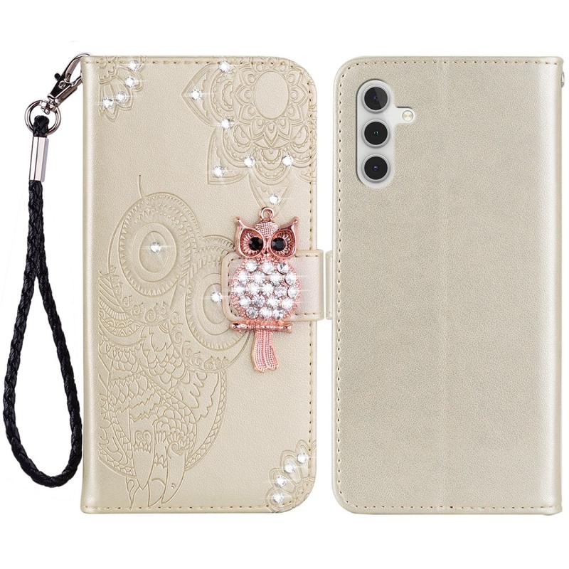 Samsung Galaxy A55 Plånboksfodral med uggla och rhinestone