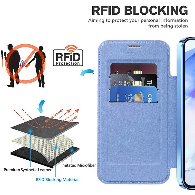 Detta premiumfodral till Samsung Galaxy A55 är tillverkat av högkvalitativ TPU, akryl och polyuretan, med en fin process för att säkerställa en känslig och utsökt finish. Det är utrustat med en praktisk kortplats för enkel svepning och utlägg på språng, och har en stark magnet för automatisk stängning, vilket gör det säkert och bekvämt att hantera föremål inuti. Detta Samsung Galaxy A55-fodral ger ett effektivt skydd mot dagligt slitage, repor, märken och skrapsår, medan den avancerade RFID-blockeringstekniken i kortfacket ser till att din personliga information skyddas mot stöld. Den inbyggda magnetringen är dessutom kompatibel med MagSafe trådlös laddning, vilket innebär att du kan ladda din Samsung Galaxy A55 utan att ta av dig fodralet.