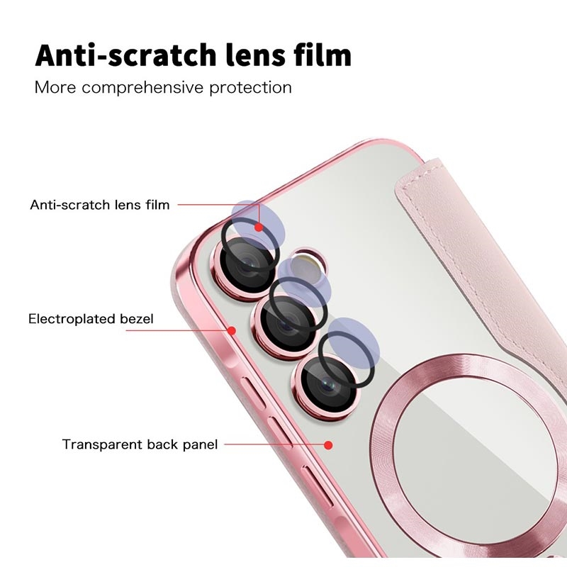 Detta premiumfodral till Samsung Galaxy A55 är tillverkat av högkvalitativ TPU, akryl och polyuretan, med en fin process för att säkerställa en känslig och utsökt finish. Det är utrustat med en praktisk kortplats för enkel svepning och utlägg på språng, och har en stark magnet för automatisk stängning, vilket gör det säkert och bekvämt att hantera föremål inuti. Detta Samsung Galaxy A55-fodral ger ett effektivt skydd mot dagligt slitage, repor, märken och skrapsår, medan den avancerade RFID-blockeringstekniken i kortfacket ser till att din personliga information skyddas mot stöld. Den inbyggda magnetringen är dessutom kompatibel med MagSafe trådlös laddning, vilket innebär att du kan ladda din Samsung Galaxy A55 utan att ta av dig fodralet.