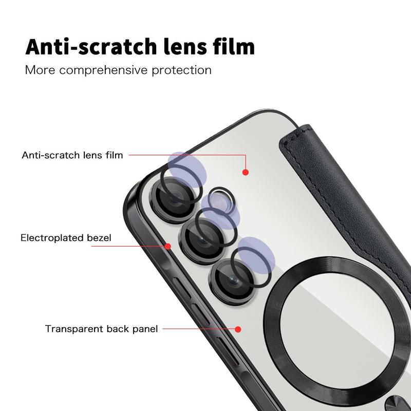 Detta premiumfodral till Samsung Galaxy A55 är tillverkat av högkvalitativ TPU, akryl och polyuretan, med en fin process för att säkerställa en känslig och utsökt finish. Det är utrustat med en praktisk kortplats för enkel svepning och utlägg på språng, och har en stark magnet för automatisk stängning, vilket gör det säkert och bekvämt att hantera föremål inuti. Detta Samsung Galaxy A55-fodral ger ett effektivt skydd mot dagligt slitage, repor, märken och skrapsår, medan den avancerade RFID-blockeringstekniken i kortfacket ser till att din personliga information skyddas mot stöld. Den inbyggda magnetringen är dessutom kompatibel med MagSafe trådlös laddning, vilket innebär att du kan ladda din Samsung Galaxy A55 utan att ta av dig fodralet.