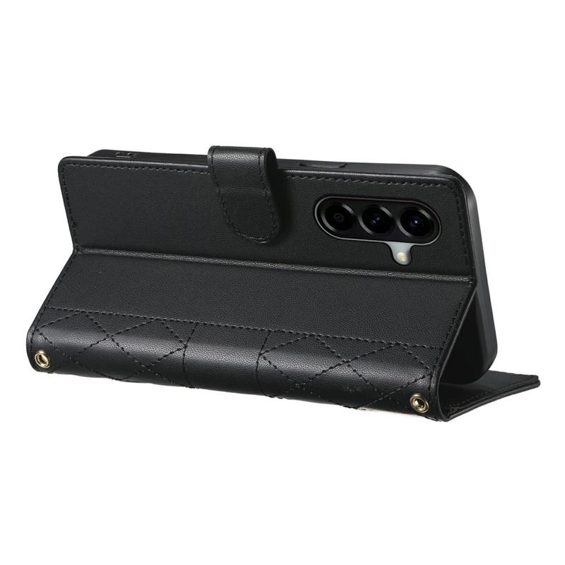 Lyxigt quiltat plånboksfodral med axel- och handledsrem för Samsung Galaxy A57 - skyddande fodral med rombmönster