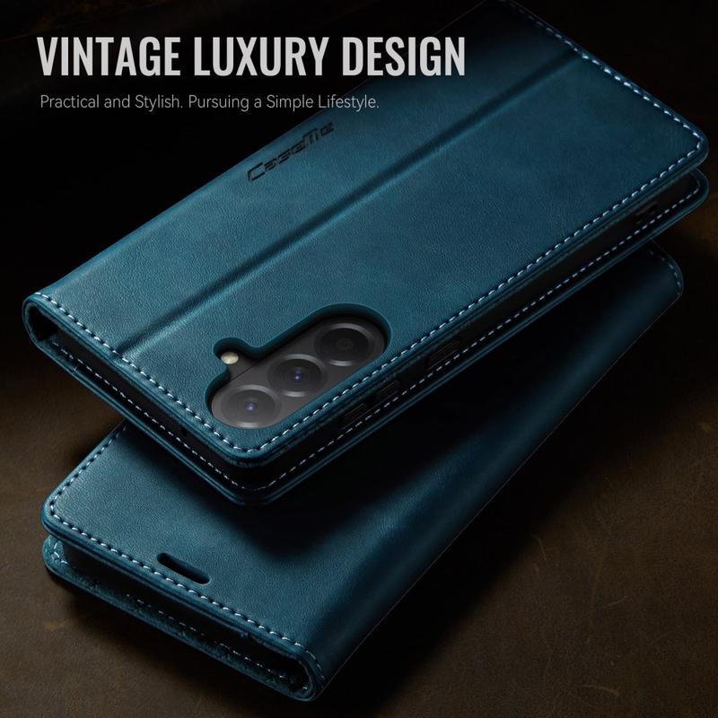 CASEME 033 Series Wallet Case för Samsung Galaxy A57 är tillverkat av polyuretan med kalvtextur kombinerat med TPU, vilket ger ett helkroppsskydd mot repor, stötar och dagligt slitage samtidigt som det bibehåller en premium, elegant look.