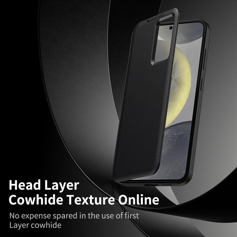 - Motståndskraftig mot fingeravtryck och fläckar: Fodralet är tillverkat av förstklassigt kohudläder och motstår fingeravtryck och fett, vilket ger ett snyggt och rent utseende.