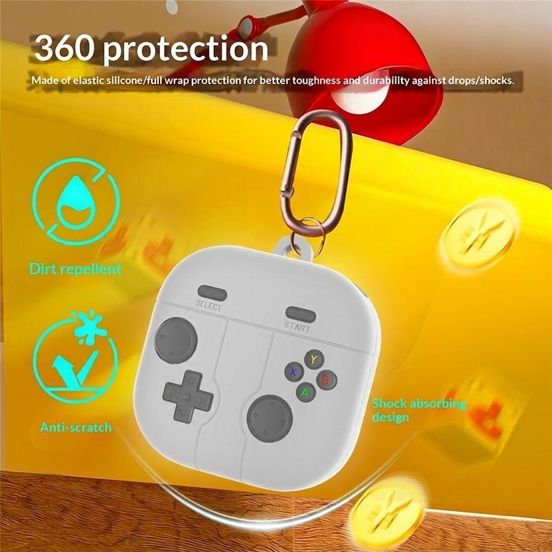 Retro Gamepad silikonfodral med karbinhake för Samsung Galaxy Buds 4, Galaxy Buds 4 Pro - Skyddsfodral i flytande silikon för öronsnäckor