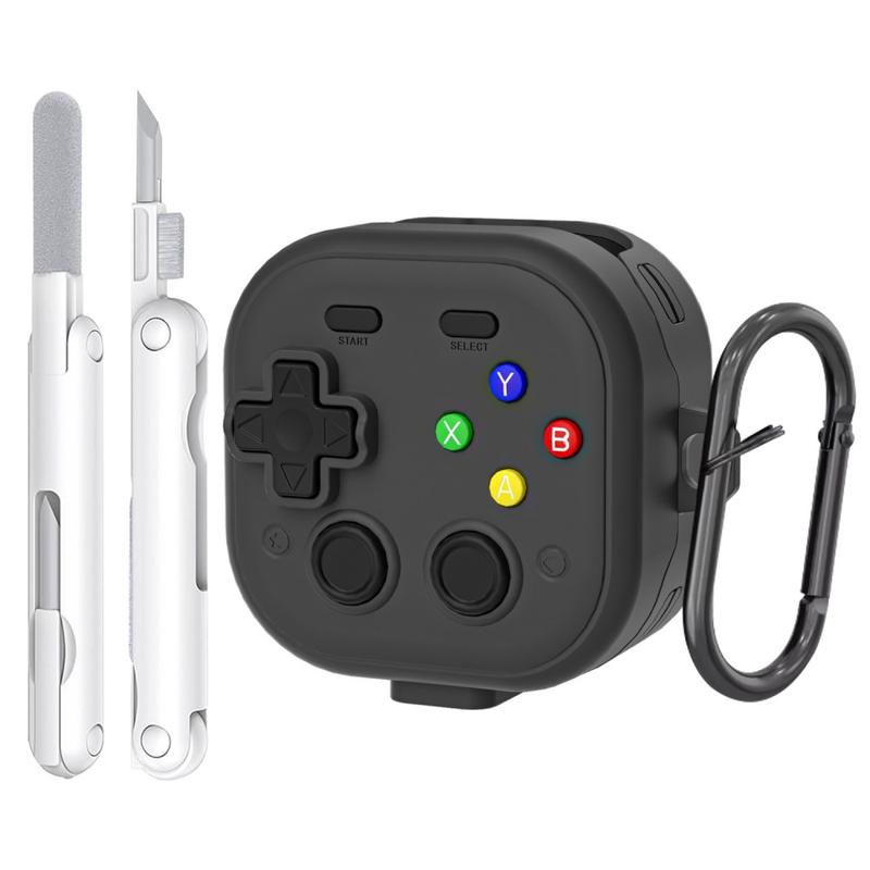 Fodral i spelkontrollstil med karbinhake och rengöringsverktyg för Samsung Galaxy Buds 4 och Galaxy Buds 4 Pro