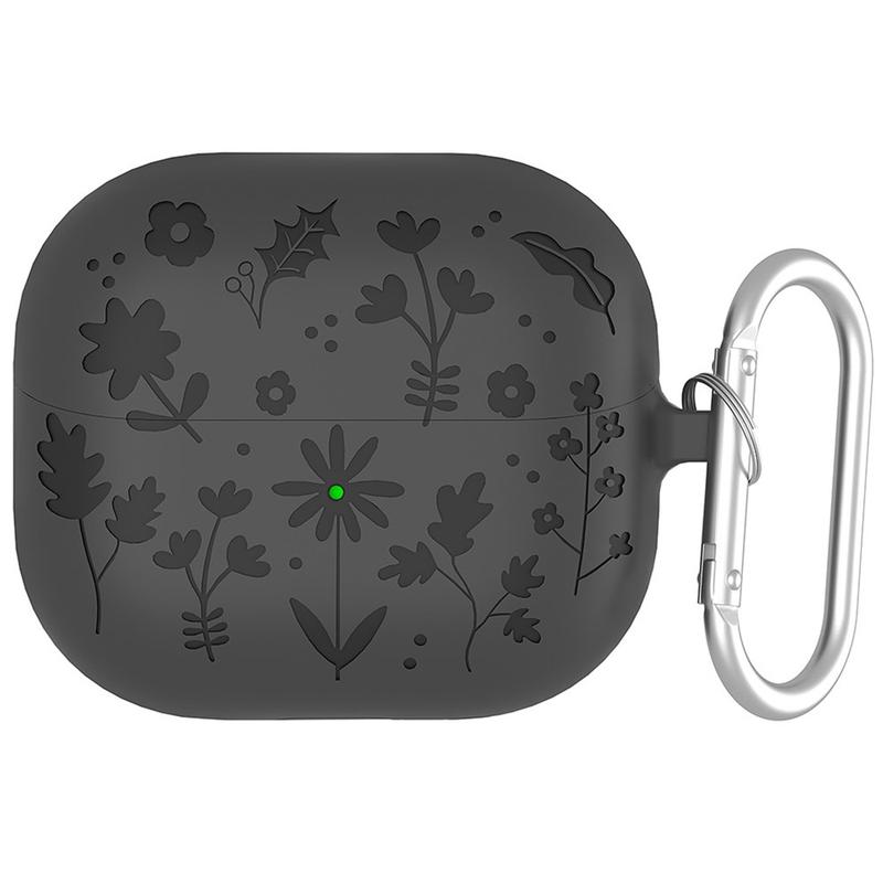 Silikonfodral med karbinhake och blommönster för Samsung Galaxy Buds3, Galaxy Buds3 Pro