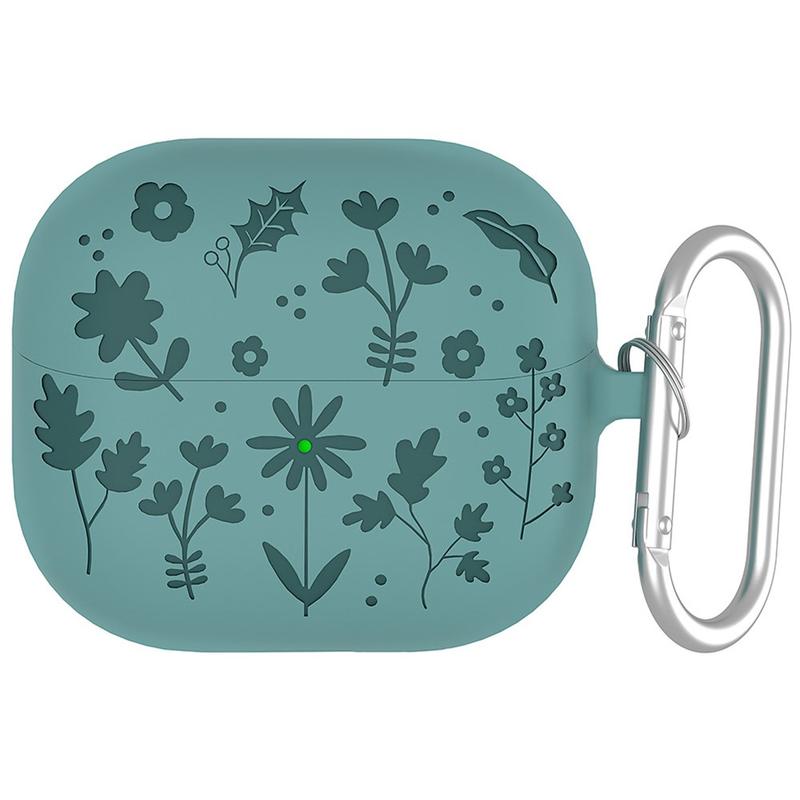 • Silikonfodral med karbinhake och blommönster för Samsung Galaxy Buds3, Galaxy Buds3 Pro