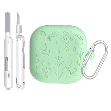 Blommigt graverat silikonfodral med rengöringspennor och karbinhake för Samsung Galaxy Buds4, Galaxy Buds4 Pro