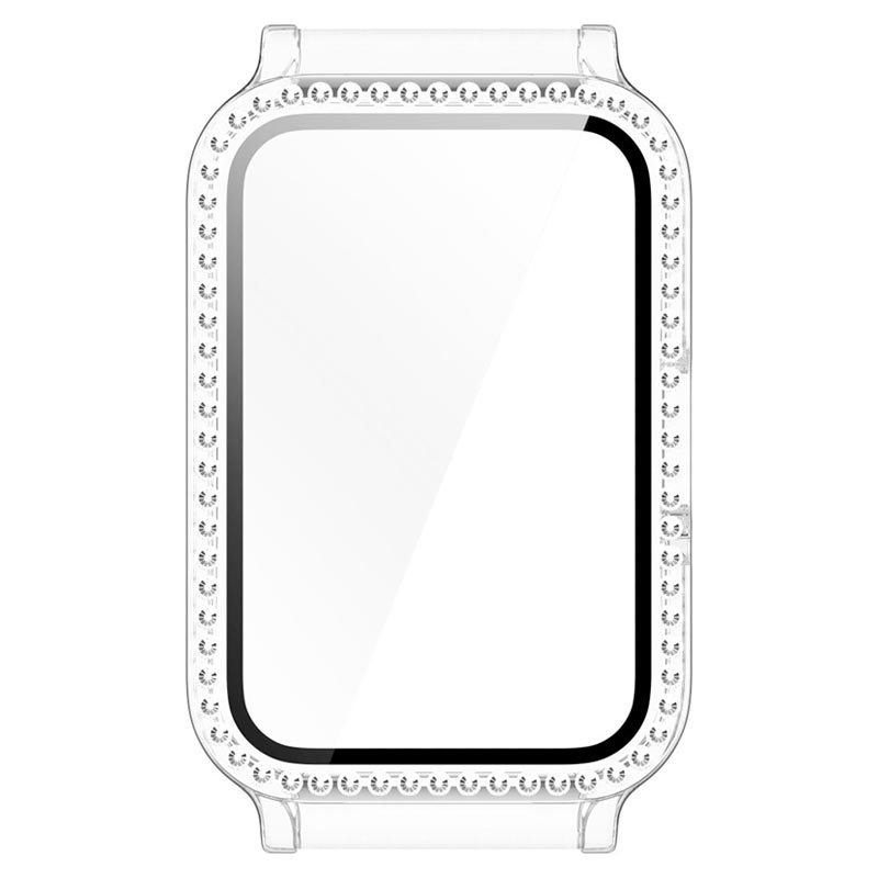 Gör din Samsung Galaxy Fit3 extra glammig och skydda den med detta attraktiva och skinande skal med inbyggt skärmskydd. Detta supertåliga plastskal är utrustat med ett kristallklart skärmskydd i härdat glas som ger ett komplett skydd till din Samsung Galaxy Fit3. Glittrande och snygg strass ger klockan en ny läcker look som drar till sig uppmärksamhet.