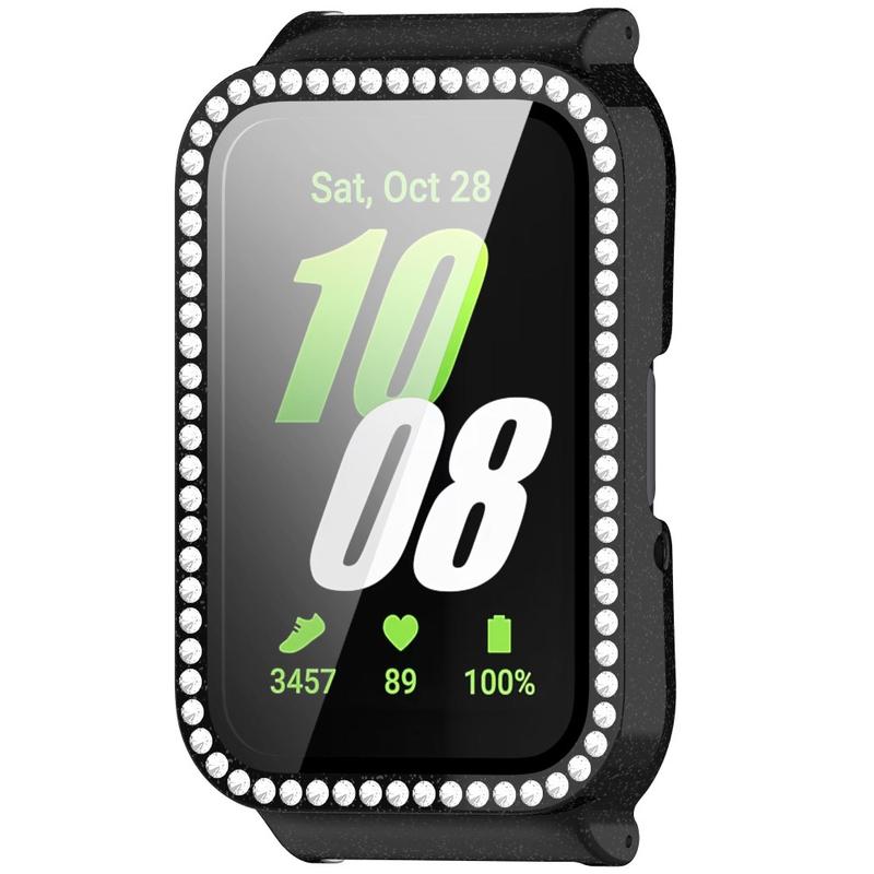 Gör din Samsung Galaxy Fit3 extra glammig och skydda den med detta attraktiva och skinande skal med inbyggt skärmskydd. Detta supertåliga plastskal är utrustat med ett kristallklart skärmskydd i härdat glas som ger ett komplett skydd till din Samsung Galaxy Fit3. Glittrande och snygg strass ger klockan en ny läcker look som drar till sig uppmärksamhet.