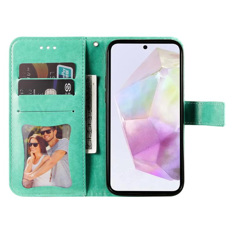 Detta unika fodral skyddar Samsung Galaxy M35 mot vardagliga repor och stötar och fungerar också som ett mediastativ. Dessutom har fodralet innerfickor för kort och ett större fack för kontanter, då att du kan hålla alla dina värdesaker på en och samma plats.