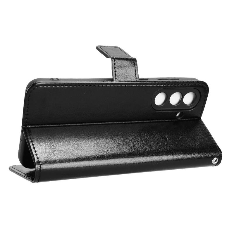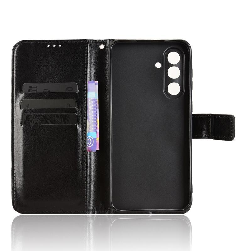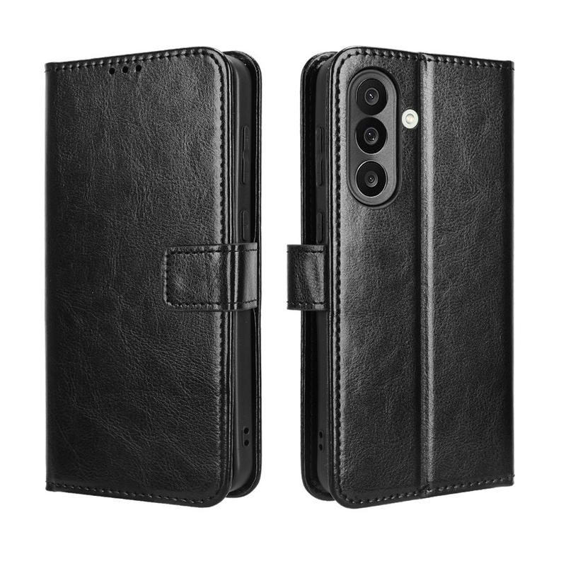 Ge din nya Samsung Galaxy M56 en raffinerad vintage-look samtidigt som den ersätter din vardagsplånbok. Utsidan i polyuretan med Crazy Horse-textur kombineras med ett stötdämpande TPU-skal för att skydda mot fall och repor, medan smarta fickor håller ordning på kort och kontanter.