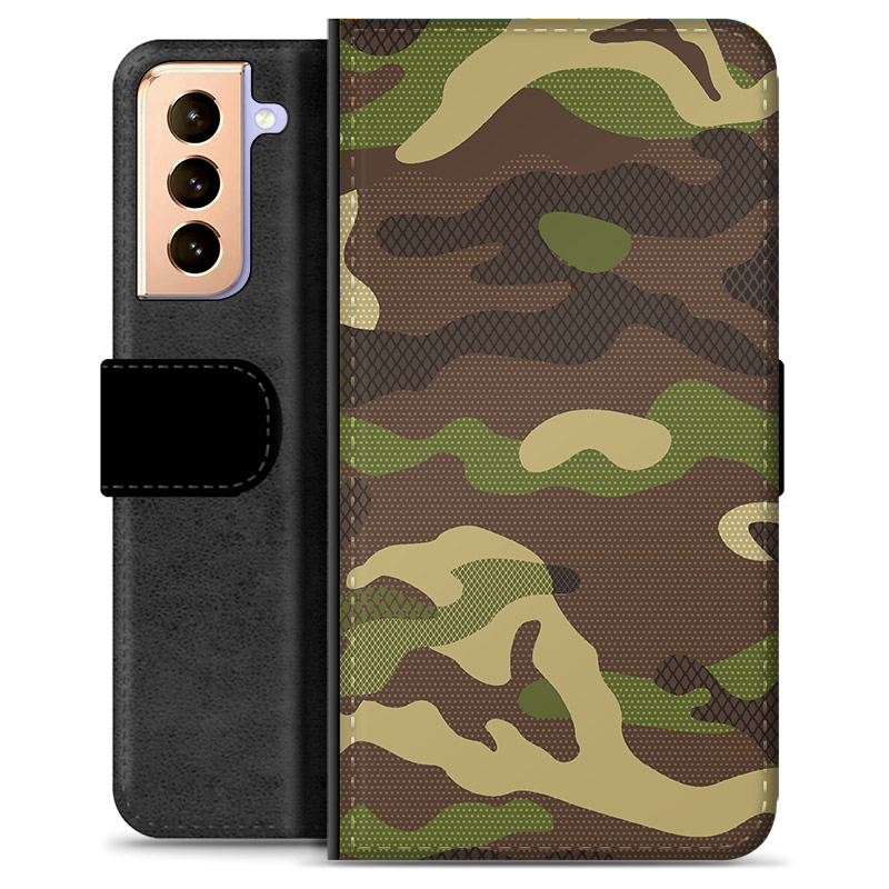 Skydda din Samsung Galaxy S21+ 5G med stil tack vare detta premium plånboksfodral med kamouflagemönster. Fodralet är inte bara en trendig accessoar, utan också en praktisk lösning för att hålla din telefon säker från vardagens stötar och repor. Detta mobilfodral ger fullständigt skydd då det täcker telefonen från alla sidor, och den robusta klaffen på framsidan ser till att även skärmen förblir skyddad när telefonen inte används.