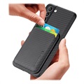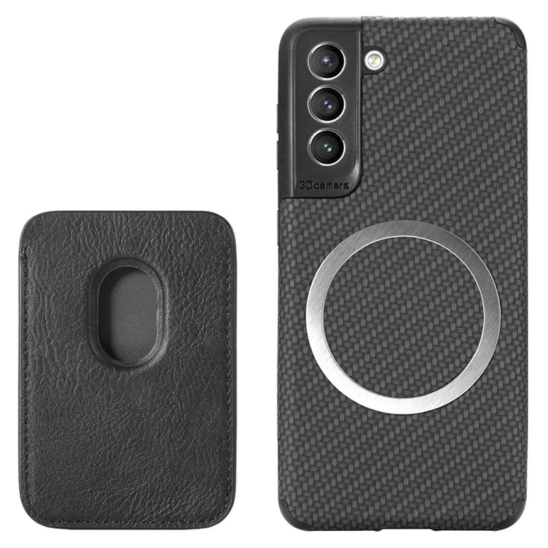 Samsung Galaxy S21 FE 5G Magnetisk Skal med Korthållare - Kolfiber - Svart