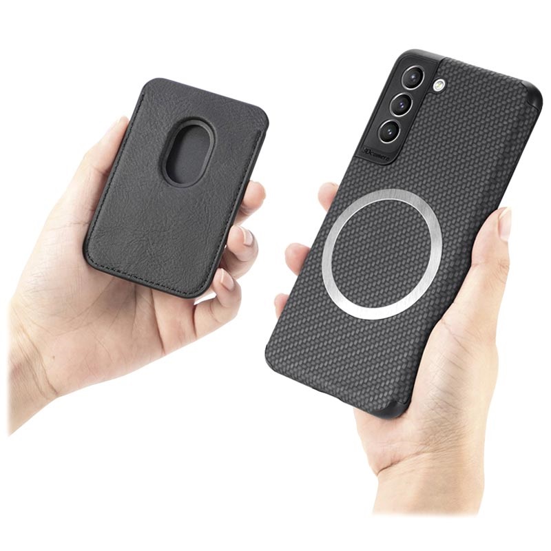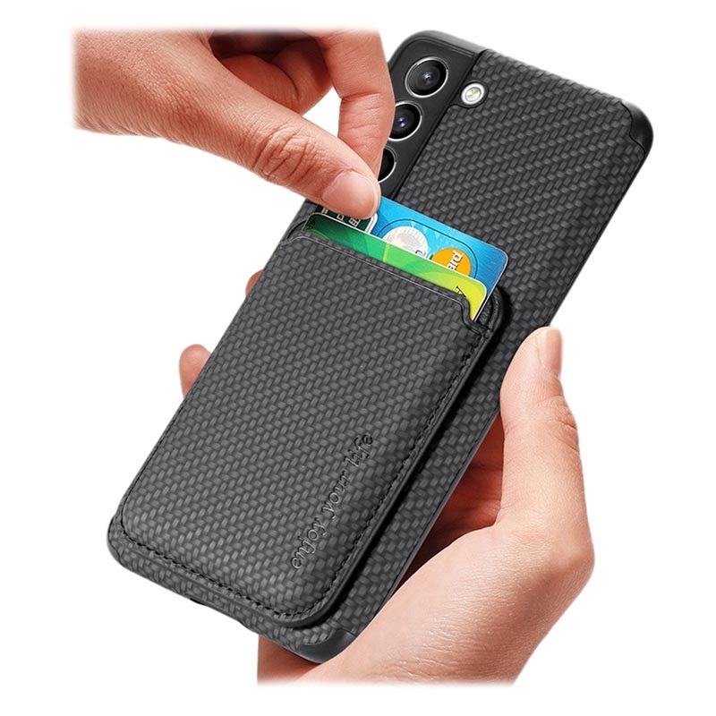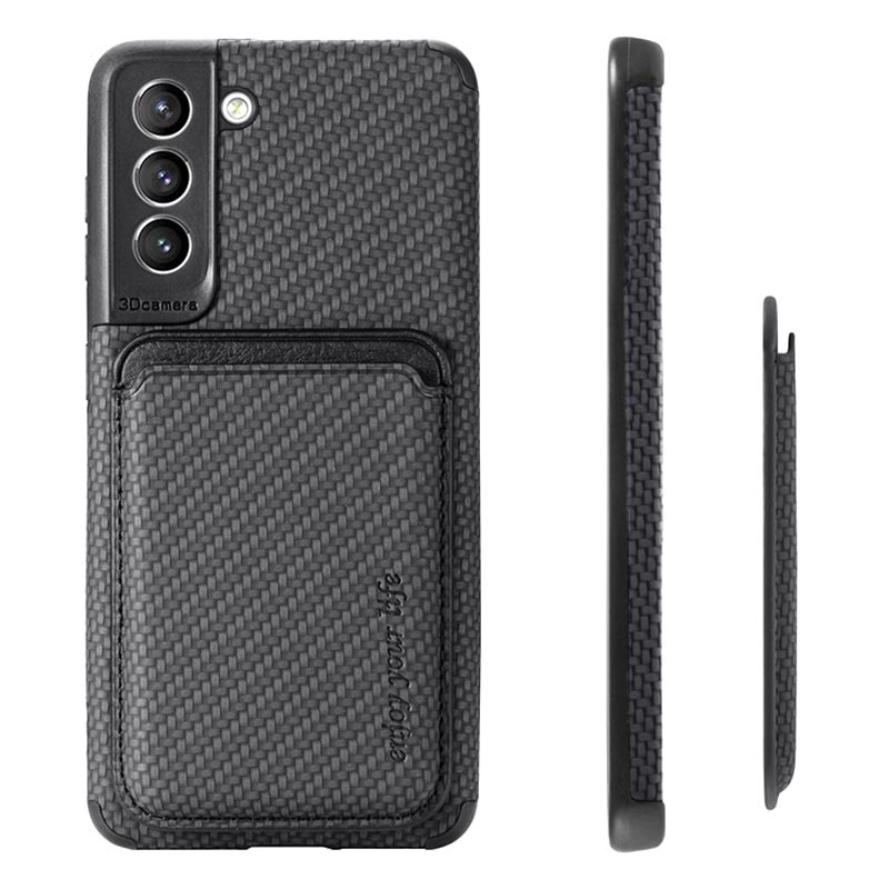 • Magnetisk Skal med Korthållare till Samsung Galaxy S21 FE 5G - Kolfiber