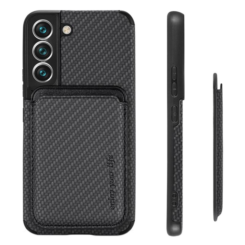 Samsung Galaxy S22 5G Magnetisk Skal med Korthållare - Kolfiber - Svart