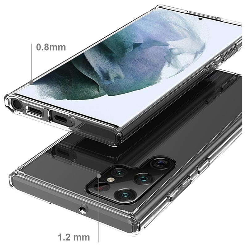 Detta tillbehör använder en kombination av akryl och TPU för att hålla din smartphone i bästa skick. Samtidigt ser förstärkta, stötabsorberande hörn till att förhindra skador från fall, medan den genomskinliga designen visar upp den vackra designen av din Samsung Galaxy S22 Ultra 5G.