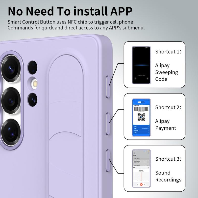 Smart Hybridskal med stående grepp för Samsung Galaxy S23 Ultra - NFC-anpassade snabbknappar, kickstand på handledsband och kameraskydd i legering
