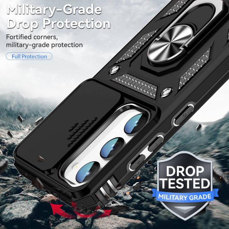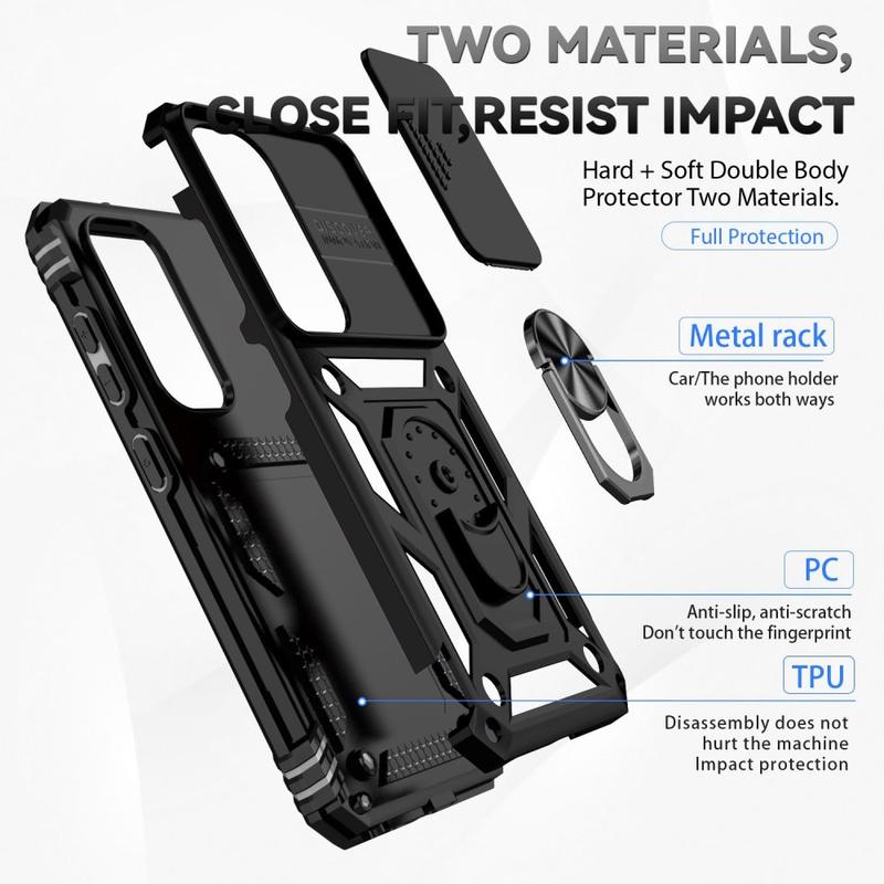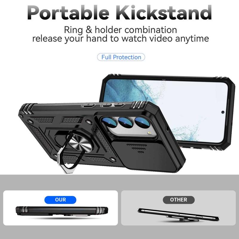 - Roterande ringhybridfodral med kameraavskärmning för Samsung Galaxy S23 5G