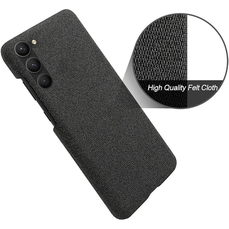 Detta klädda plastfodral för din Samsung Galaxy S23 5G erbjuder en tidlös och sofistikerad design, överlägsen skydd och en behaglig taktil upplevelse. Det har en hållbar och represistent klädd yta, tillsammans med en plastbaksida med upphöjda kanter för förbättrat skydd av skärmen och kameran. Trots sitt pålitliga skydd behåller detta fodral en tunn och lätt profil, vilket säkerställer minimal bulk. Dessutom är det enkelt att installera och ta bort, vilket garanterar en snabb och smidig process som inte skadar din Samsung Galaxy S23 5G.