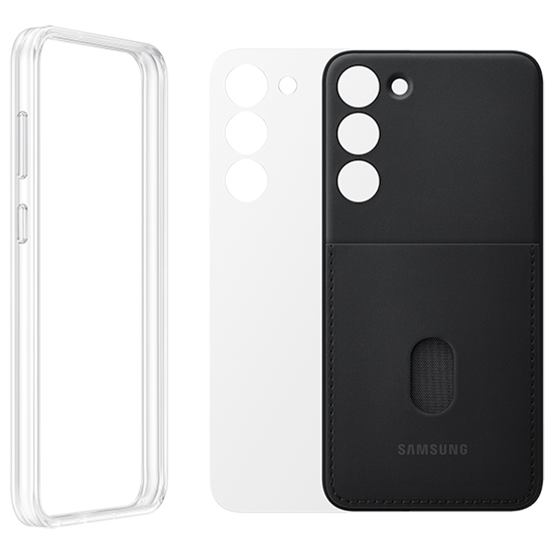 Ändra utseendet på din Samsung Galaxy S23 Plus 5G på några sekunder med det originella Frame Case. Detta praktiska skal kommer med en lätt ram och två utbytbara bakskal. Ett bakskal är genomskinligt, som visar upp den fantastiska designen på Samsung Galaxy S23+ 5G, medan det andra bakskalet har en kortplats för din kreditkort.