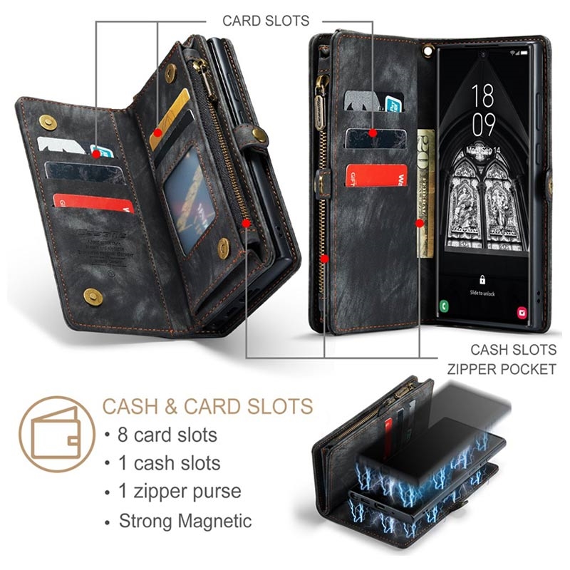 Caseme 008 2-i-1 Multifunktionellt Plånboksfodral för Samsung Galaxy S23 Ultra 5G