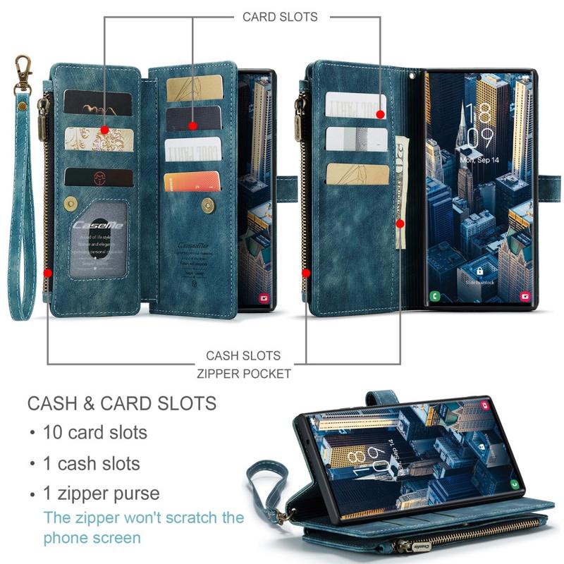 Gör din dag otroligt effektiv med Caseme 2-i-1 Samsung Galaxy S23 Ultra 5G plånboksfodral.