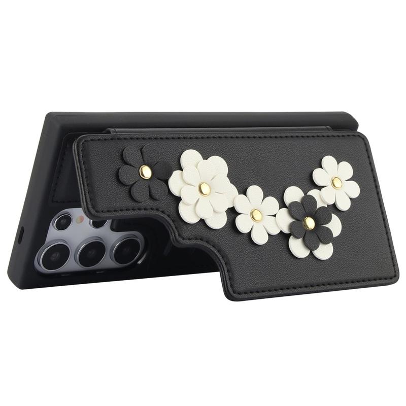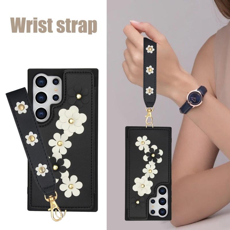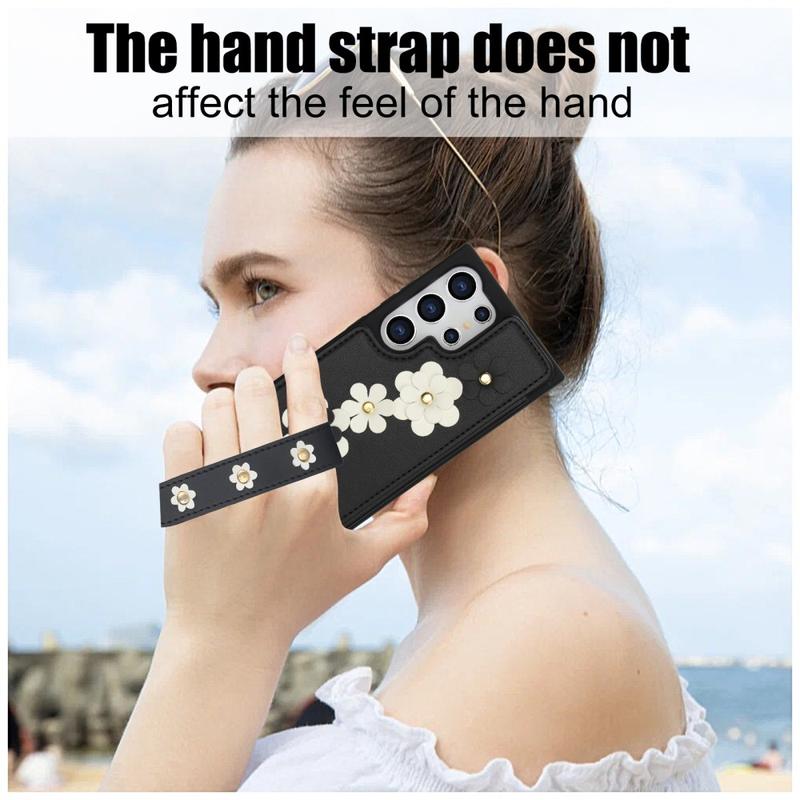 Blomsterdekorerat fodral med rem och kortfack för Samsung Galaxy S24 Ultra