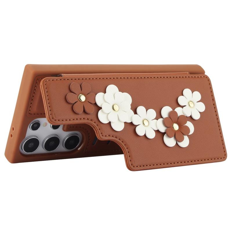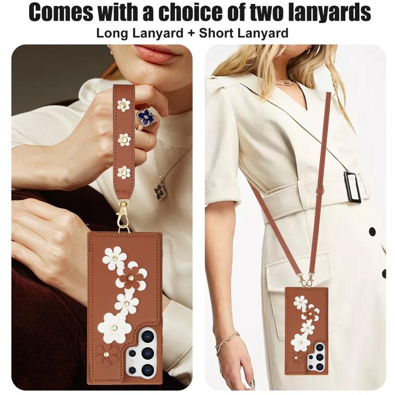 • Blomsterdekorerat fodral med rem och kortfack för Samsung Galaxy S24 Ultra