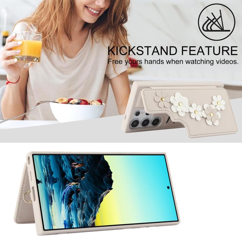 Samsung Galaxy S24 Ultra Flower Decor Case är tillverkat av polyuretan och TPU-material, vilket ger ett hållbart skydd. Den eleganta designen har blommor på baksidan av fodralet och på handremmen. Det har en kortplats för förvaring av upp till 4 viktiga kort och den bakre korthållaren kan också användas som ett kickstand för flera betraktningsvinklar. Magnetknappen håller korten säkra, medan exakta utskärningar ger full åtkomst till alla knappar och portar. Skydda din telefon från dagliga skador med det här praktiska fodralet som levereras med en handrem och axelrem för enkel transport.