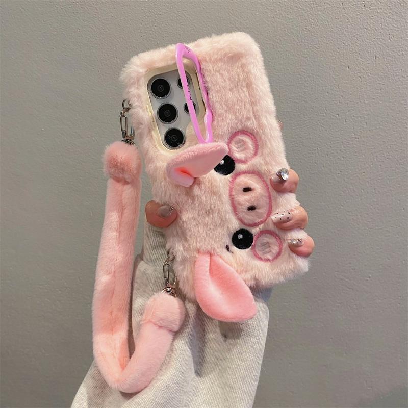 - Charmig och rolig design: Den söta grisen i plysch på utsidan ger din telefon en unik, lekfull stil.