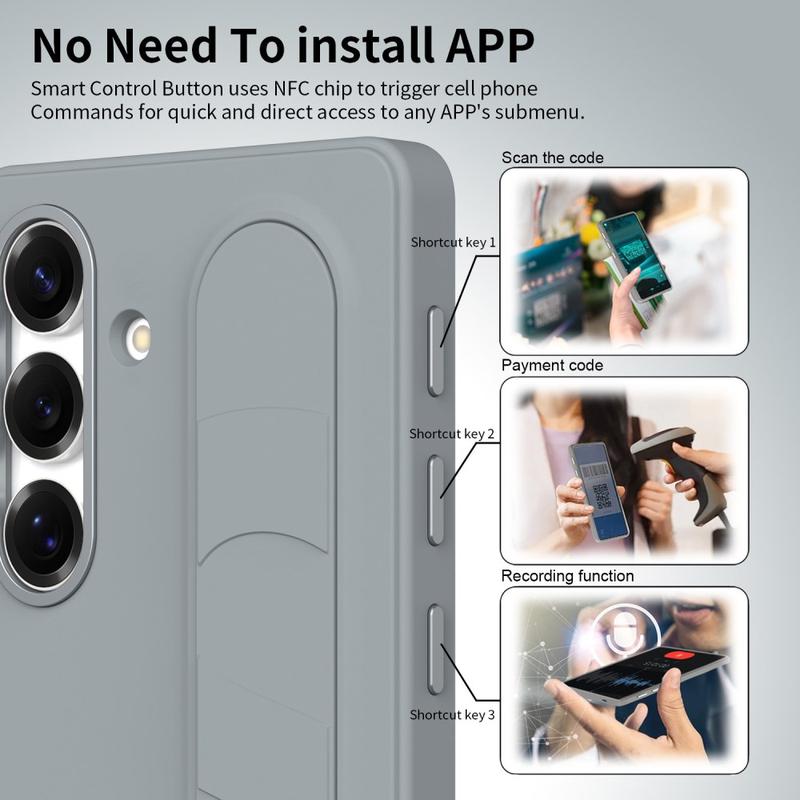 Smart Hybridskal med stående grepp för Samsung Galaxy S24+ - NFC-anpassade snabbknappar, kickstand på handledsband och kameraskydd i legering