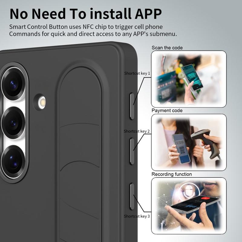 Det här smarta hybridfodralet är utrustat med tre intelligenta NFC-aktiverade knappar som gör att du kan skapa snabb åtkomst till appar som Kamera, Ficklampa eller Skärmdump med en enda tryckning. Ingen laddning, inga extra appar - bara enkel, omedelbar funktionalitet.