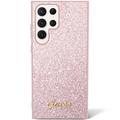 Samsung Galaxy S24 Ultra Guess Glitter Flakes Metal Logo Hybridskal - Rosa