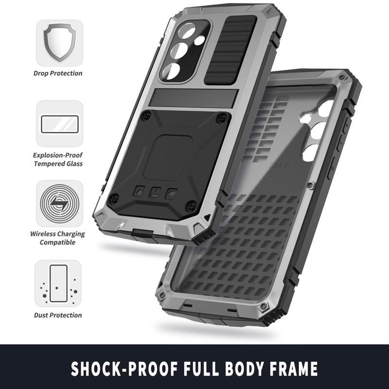 Upplev oöverträffat skydd och funktionalitet med R-Just Case för Samsung Galaxy S25. Detta hybridfodral är byggt för hållbarhet och kombinerar PC-, silikon- och metallmaterial för omfattande skydd mot vardagligt slitage. Med sitt integrerade kickstand och medföljande härdade glasfilm erbjuder detta fodral premiumfunktionalitet utan att kompromissa med stilen. Designad för den moderna användaren, det är det perfekta tillbehöret för att skydda din enhet samtidigt som du behåller en elegant estetik.