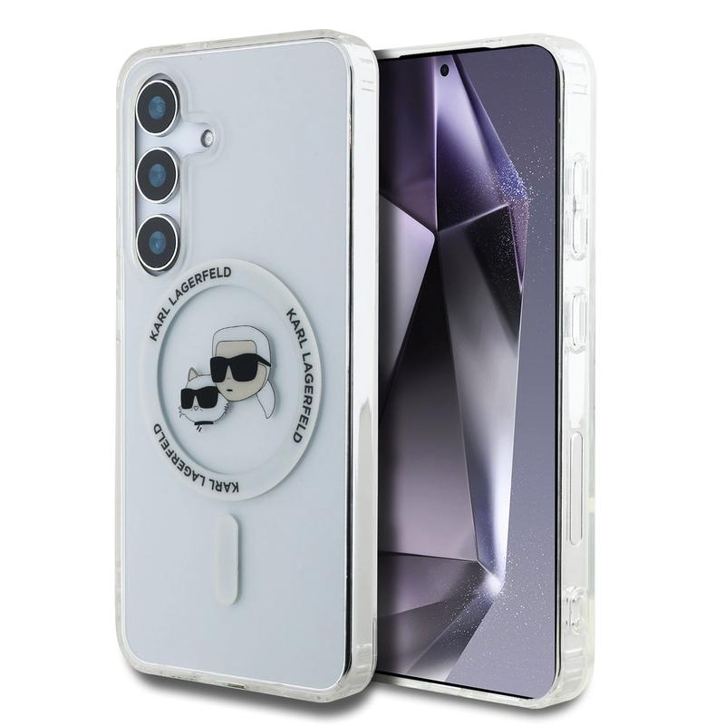 Förhöj din Samsung Galaxy S25 med Karl Lagerfeld IML Karl&Choupette Heads MagSafe Case - där lyx möter praktik!