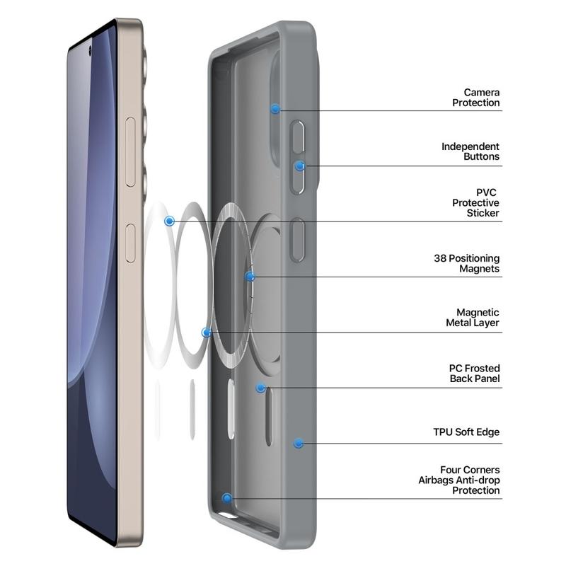 Skydda din Samsung Galaxy S25 Ultra med ett snyggt matt skal som klickas direkt på MagSafe-laddare och tillbehör. Yind-serien kombinerar en reptålig PC-bakplatta med stötdämpande TPU-kanter och en precisionsjusterad magnetring, vilket ger kabelfri strömförsörjning och ett heltäckande fallskydd utan skrymmande fickor.