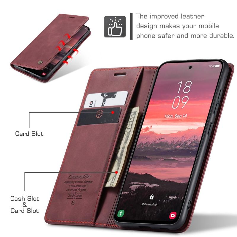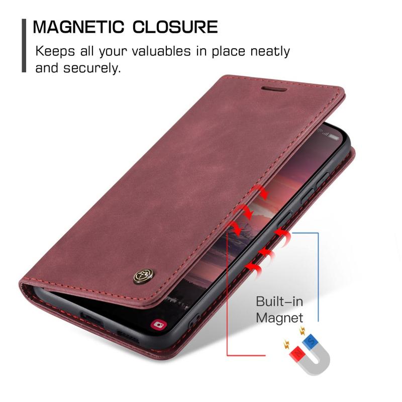 - Inbyggda magneter som ser till att hålla Caseme 013 Series plånboksfodral stängt