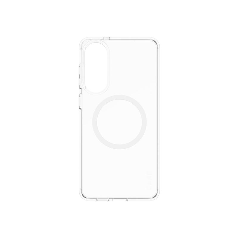 CARE by PanzerGlass Flagship Case för Samsung Galaxy S25 Edge kombinerar stil och robust skydd. Fodralet är tillverkat av 100% återvunnen plast och har militärklassat fallskydd, reptålighet och stötdämpning. Dess transparenta design med svart MagSafe-kompatibilitet säkerställer att din Samsung Galaxy S25 Edge förblir snygg medan den laddas trådlöst.