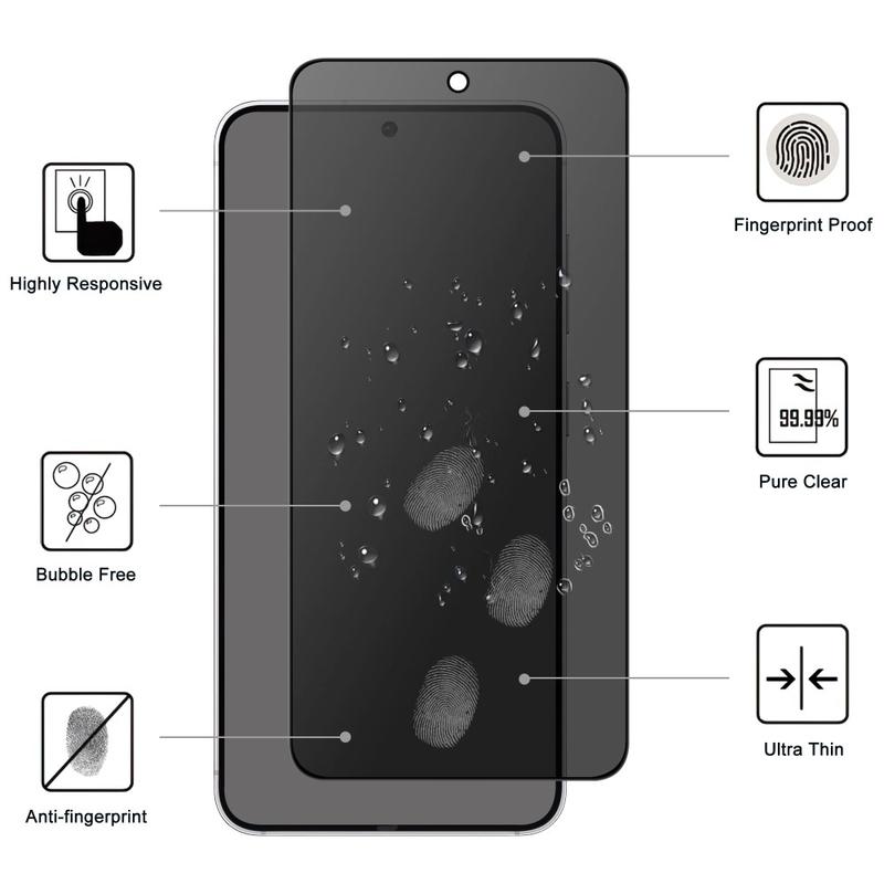 Detta helskärms skärmskydd är den ultimata lösningen för att skydda skärmen på din Samsung Galaxy S25 Edge samtidigt som det skyddar din integritet. Sekretessfiltret är den framstående funktionen hos detta skärmskydd och är utformat för att skydda dina känsliga uppgifter från nyfikna ögon. Det helskärmade designen på detta skärmskydd ser till att varje hörn på din Samsung Galaxy S25 Edge's skärm är skyddat.